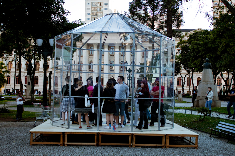 Na mesma semana tivemos uma reunião sobre os próximos passos da companhia e eu falei sobre o quanto Infiltrações havia mexido comigo, o quanto eu passei a acreditar na necessidade deste tipo de arte. Qual necessidade? Qual tipo de arte? São perguntas que precisávamos nos fazer antes de apenas reproduzir a intervenção do Couve-Flor. Partimos para dois meses de discussão regada de O Teatro é necessário? e Carta aberta, ambos de Denis Guénoun, e As heterotopias de Michel Foucault. Havia questões nestes textos que nos eram centrais. No primeiro, Guénoun discute a falta de público nas peças teatrais em paralelo ao excesso de pessoas nos cursos de teatro. Para o autor, o indivíduo contemporâneo só pode se sentir parte de uma obra, estar representado nela, se ele realmente atuar na mesma. O grande golpe do teatro em nossa época só poderia ser tornar o público ativo. Carta aberta é um texto sobre, para, e, principalmente, pelo teatro. Um novo, não mais feito para poucos. Uma possibilidade nova de paixão para outros apaixonados da sociedade. Guénoun é contra o desejo comum aos artistas da adequação do povo ao pensamento artístico contemporâneo. Para o autor, a população não deve correr para alcançar a arte, o artista é que deve sair do seu meio restrito de convivência e endereçar sua obra à população. “Você quer os fanáticos por futebol, é preciso ir ao estádio sentir subir o grito quando a jogada é bonita. Deixe o teu quarto, tua vida interior. É preciso levá-la para dançar. Faze-la valsar” (1).